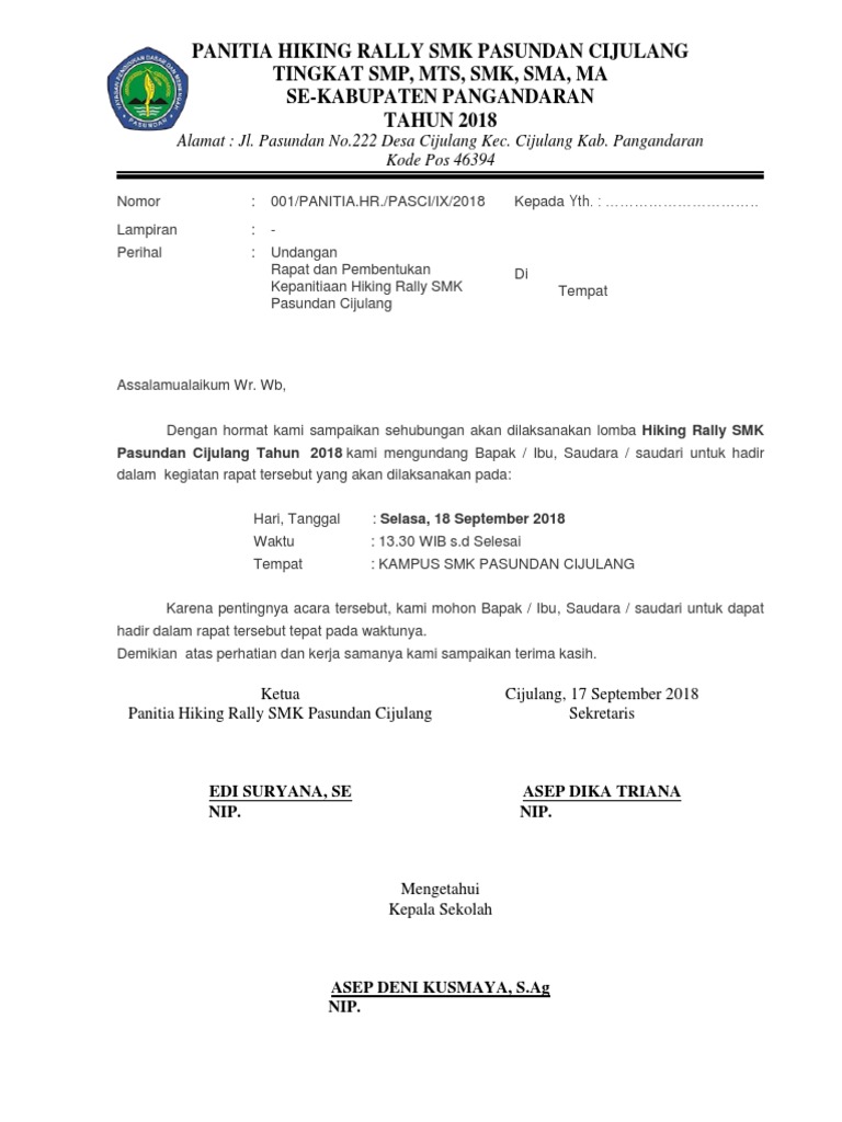 15 Contoh Surat Undangan Resmi Tidak Resmi Rapat Pengajian Dll from made-blog.com