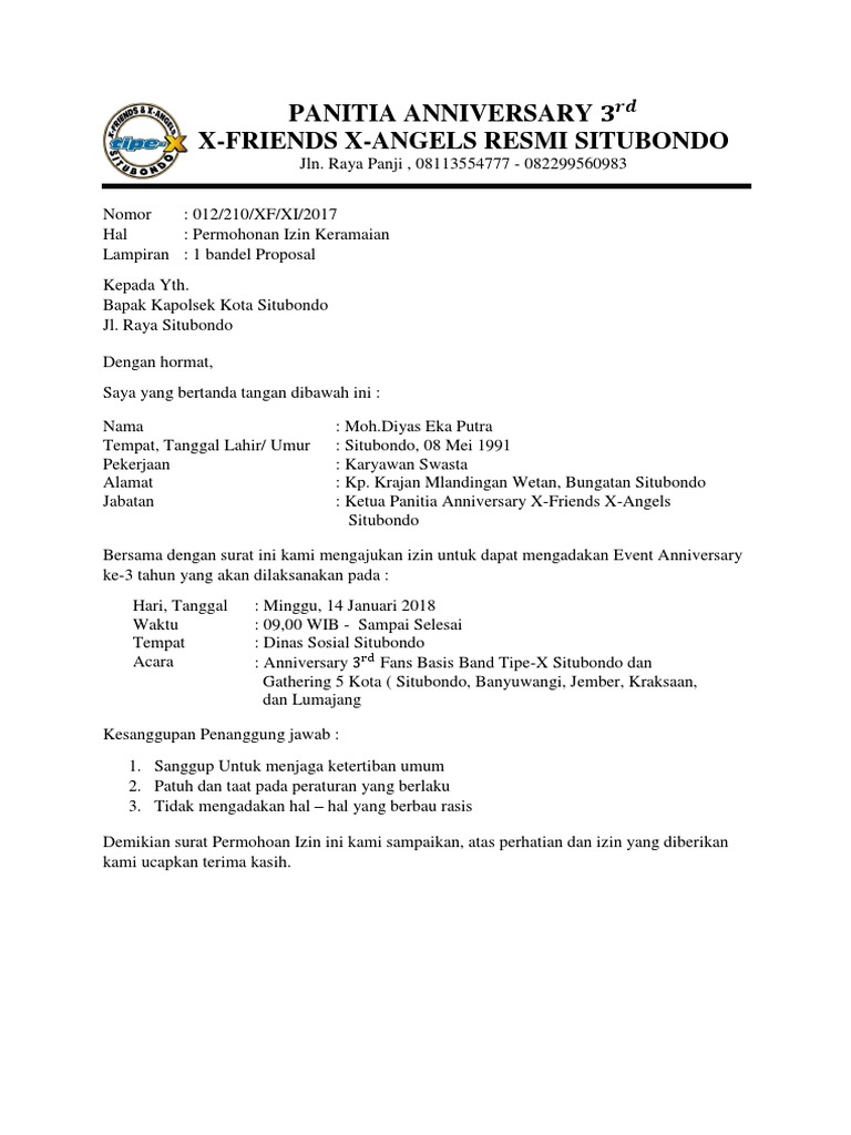 Pemegang izin / penyelenggara sanggup melaksanakan kegiatan dimaksud sesuai dengan waktu yang telah ditentukan yaitu sampai jam 17.00 wib (tertera dalam. Salah satu contohnya surat pemberitahuan kegiatan ke kepolisian. Pemegang izin / penyelenggara sanggup melaksanakan kegiatan dimaksud sesuai dengan waktu yang telah ditentukan yaitu sampai jam 17.00 wib (tertera dalam. Itulah salah satu contoh surat pengantar surat izin keramaian pesta acara dari desa untuk kapolres.