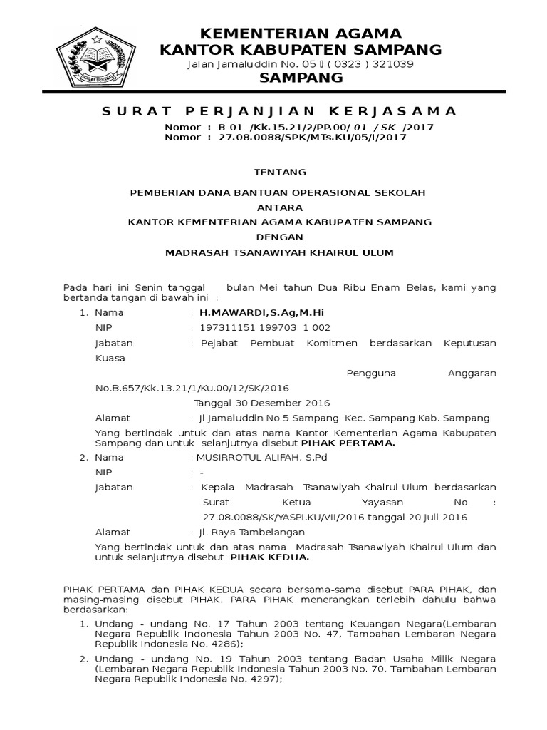 Surat perjanjian kerjasama kemitraan usaha memuat perjanjian kedua belah pihak untuk mengembangkan usaha serta menjalin kemitraan surat perjanjian adanya kerjasama supplier barang. 75%(12)75% found this document useful (12 votes). Pada hari ini, senin 6 mei 2019 kami yang.