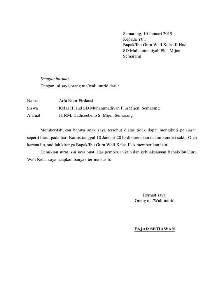 20+ Surat Izin Sakit Buat Anak Sd