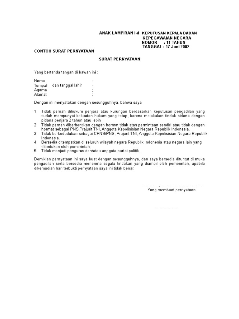 Contoh surat pernyataan adalah surat yang digunakan untuk menyatakan sesuatu kepada penerima. Sebagai seorang anak, kita masih membutuhkan surat pernyataan dari orang tua untuk mendukung kita dalam melakukan suatu tugas atau tindakan. 11 tahun 2002 tanggal :