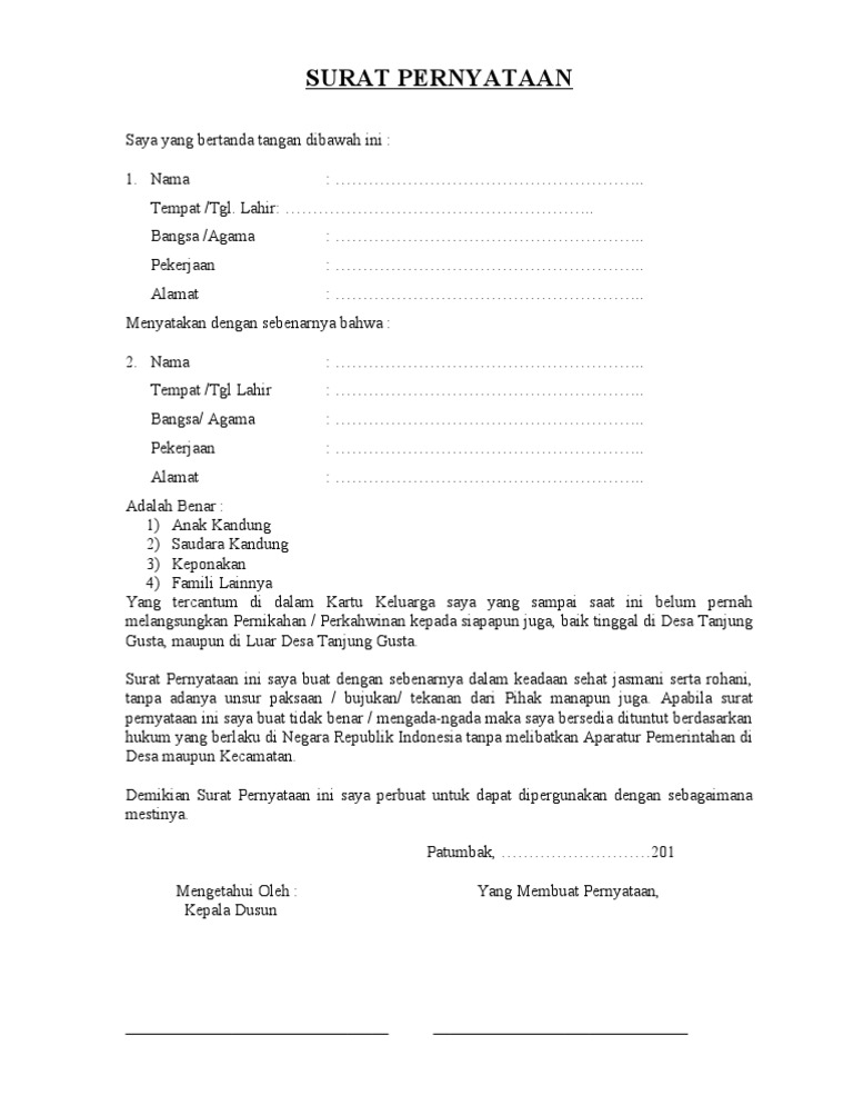 26+ Contoh Surat Pernyataan Anak Diluar Nikah