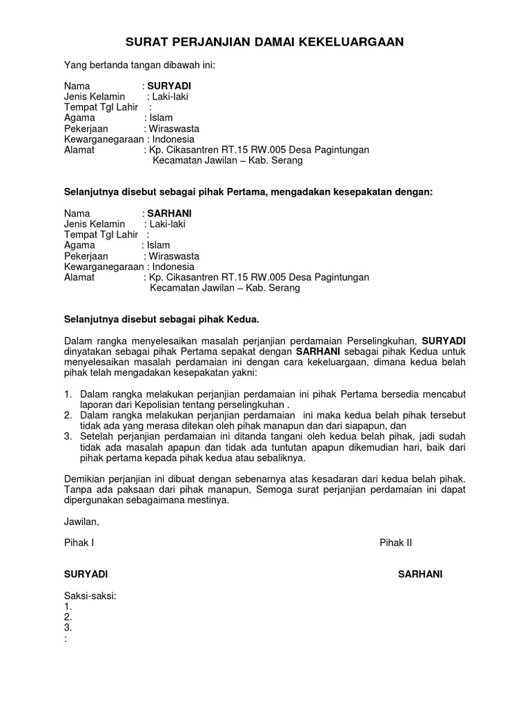 28+ Surat Perjanjian Damai Kecelakaan Doc Pics. Ada yang mengendarai mobil, motor, atau pun angkutan umum se. Dengan dibuatnya surat perdamaian khususnya perkara kecelakaan lalu lintas, diharapkan permasalahan antara pihak pelaku dengan pihak korban segera berakhir;