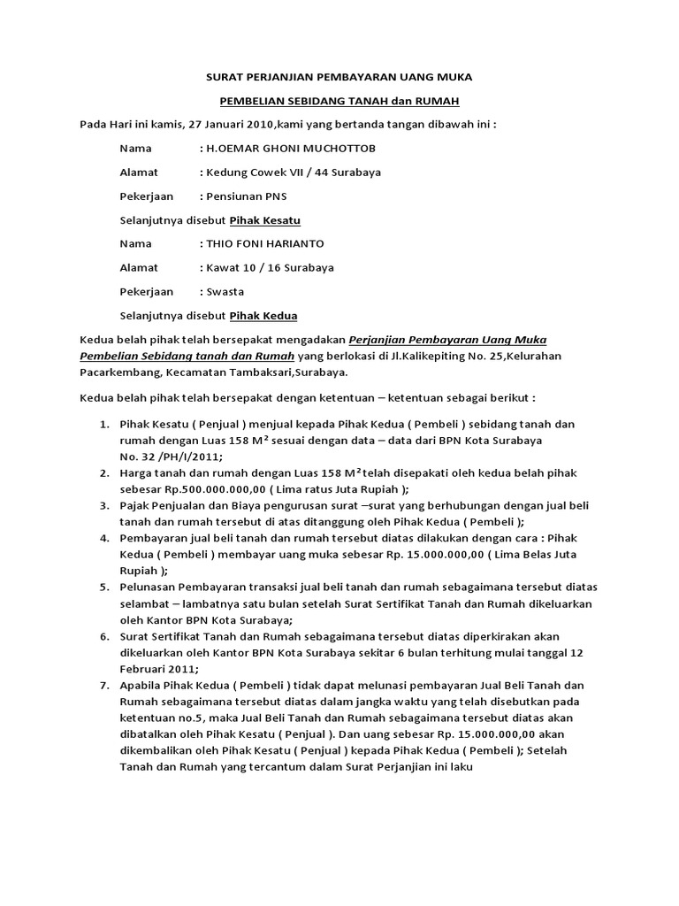 29+ Surat Perjanjian Pembayaran Uang Muka Jual Beli Tanah