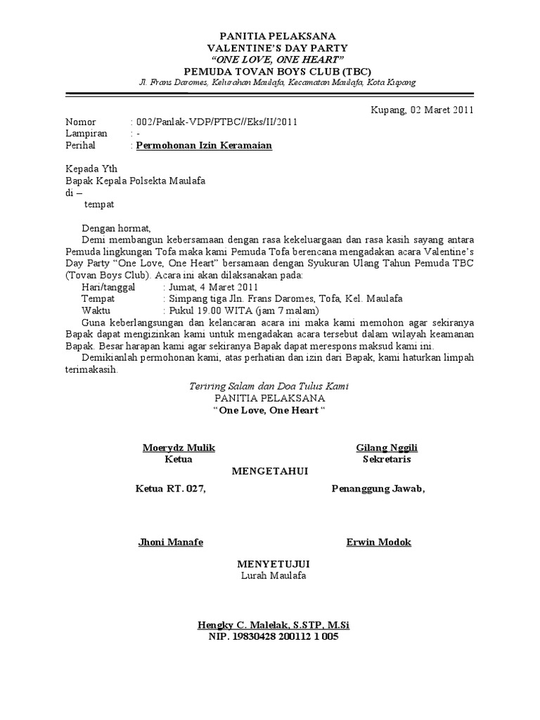 30+ Surat Izin Acara Keramaian Pics. Surat izin keramaian adalah sebuah surat yang ditulis perseorangan maupun kelompok yang mana isinya memohon agar dapat mengadakan suatu keramaian (kegaiatan/acara) yang ditujukan kepada kepolisian. Contoh surat izin keramaian yang benar.