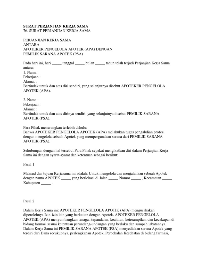 31+ Contoh Surat Perjanjian Kerjasama Apoteker Dan Psa