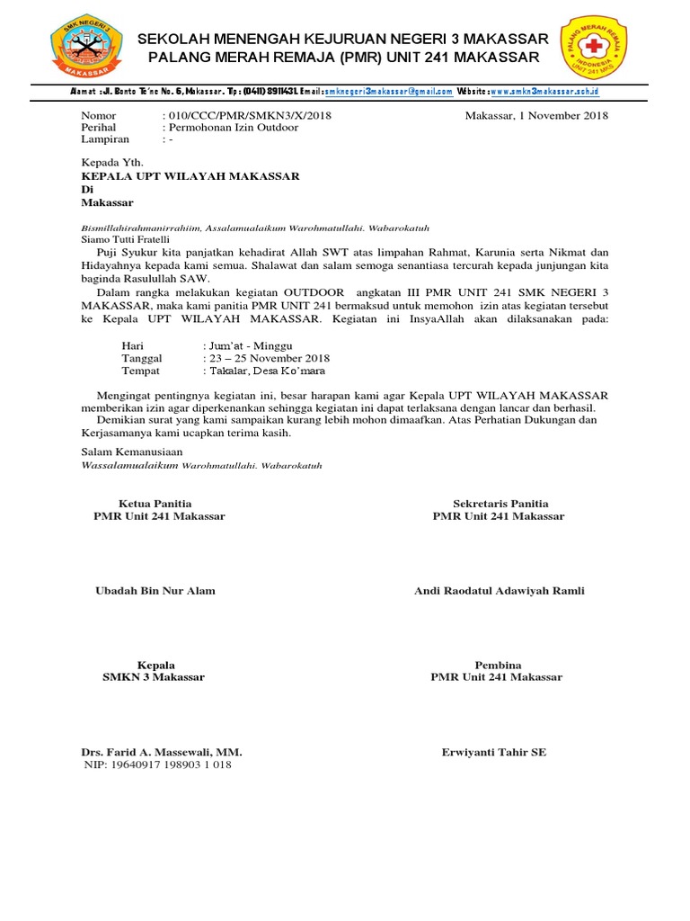 1415 568 (kartu pelajar)dengan ini. Palang merah remaja (pmr) sekolah menengah kejuruan negeri 1. Dan inilah contoh surat izin orang tua yang diberikan kepada anaknya untuk bisa mengikuti pelatihan dan pendidikan staff penerbangan di sekolah pramugari dimikian informasi tentang contoh surat izin orang tua siswa sebagai syarat pendaftaran pendidikan staff penerbangan & pramugari. Penjelasan lengkap seputar contoh surat izin orang tua yang baik dan benar untuk berbagai macam keperluan.
