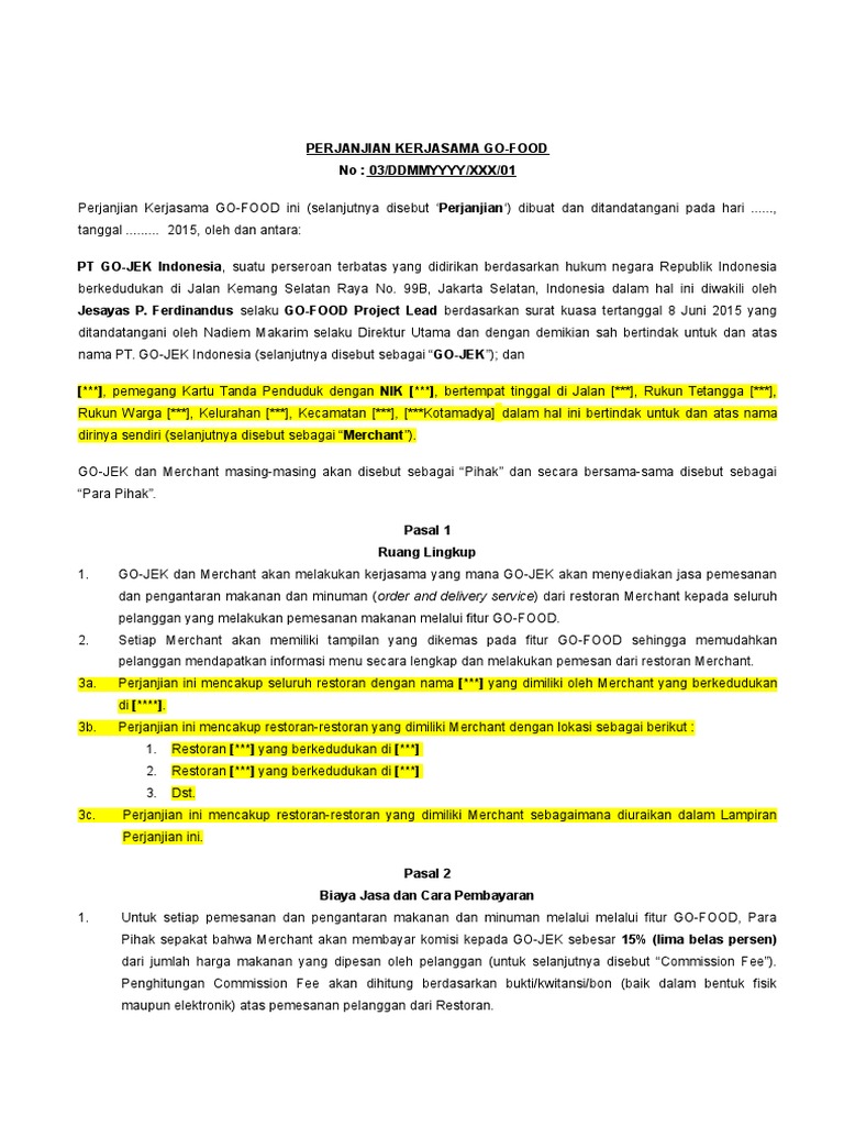 Jika anda merasa cocok dengan tawaran kerjasama tersebut, maka anda bisa membalasnya dan menanyakan lebih pasal 1 dalam surat perjanjian kerjasama ini pihak kedua meminjam uang sebesarrp.40.000.000 ( empat puluh juta rupiah) kepada pihak. Perjanjian kerjasama ini akan ditinjau kembali setiap akhir periode untuk diperbarui dan/atau dimusyawarahkan kembali oleh kedua belah pihak. Para wirausaha yang disetujui mendaftarkan warung makan atau restorannya akan diberikan surat perjanjian kerjasama yang akan ditandatangani kedua belah pihak.