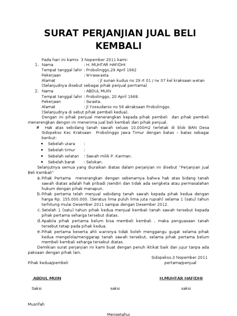 Dalam artikel ini contoh surat penjualan dan. Sedangkan pihak pembeli diharuskan menyerahkan uang pada penjual sebesar harga yang sudah disepakati bersama. Surat perjanjian jual beli sangat dibutuhkan agar tidak ada gugatan dari pihak ketiga.