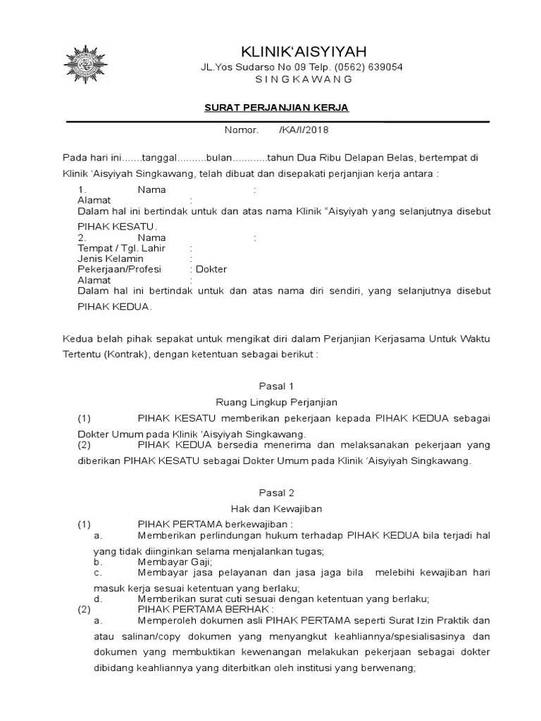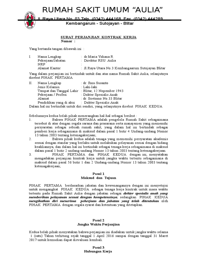 37+ Surat Perjanjian Kontrak Kerja Dokter Pics. Dengan adanya surat perjanjian kerja ini mengupayakan untuk bisa menghindari berbagai perselisihan yang kemungkinan bisa saja timbul di suatu hari nanti, dan sebagai acuan untuk menyelesaikan perselisihan maupun perkara yang kemungkinan akan datang karena diakibatkan oleh. Jadi, ketika anda melamar pekerjaan di perusahaan tertentu, mungkin pihak perusahaan akan menerima anda sebagai karyawan kontrak.