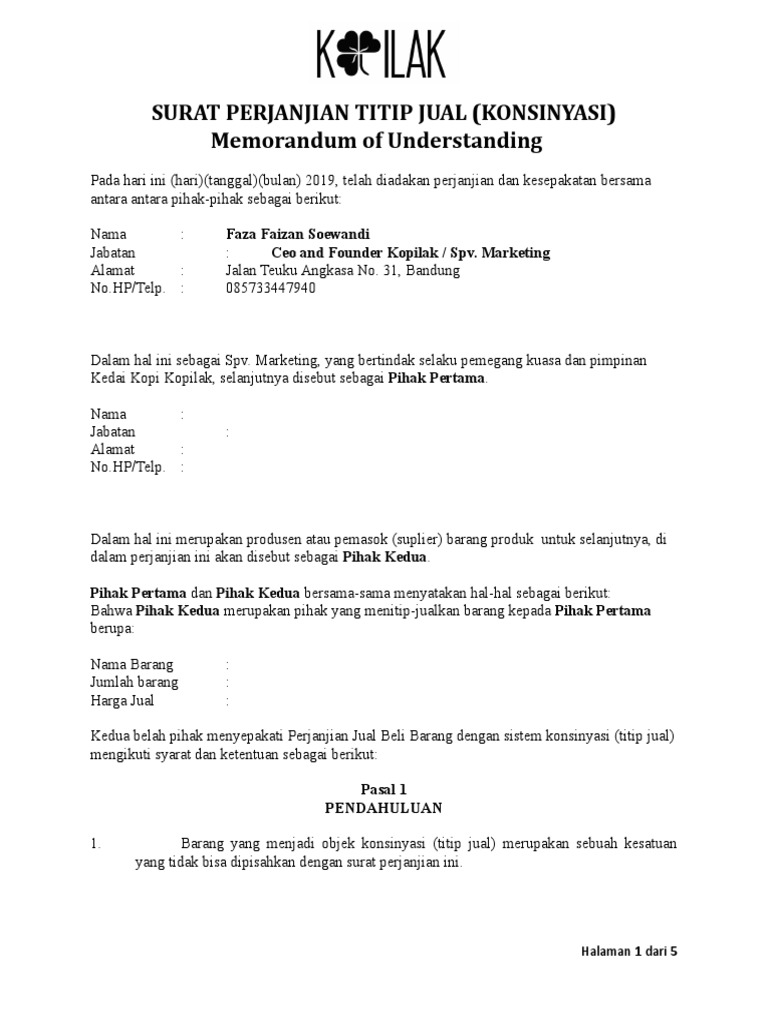 41+ Contoh Surat Perjanjian Konsinyasi Pictures. Lampiran mencantumkan nama barang, jumlah, target penjualan dan. Selanjutnya dalam surat perjanjian ini disebut sebagai.
