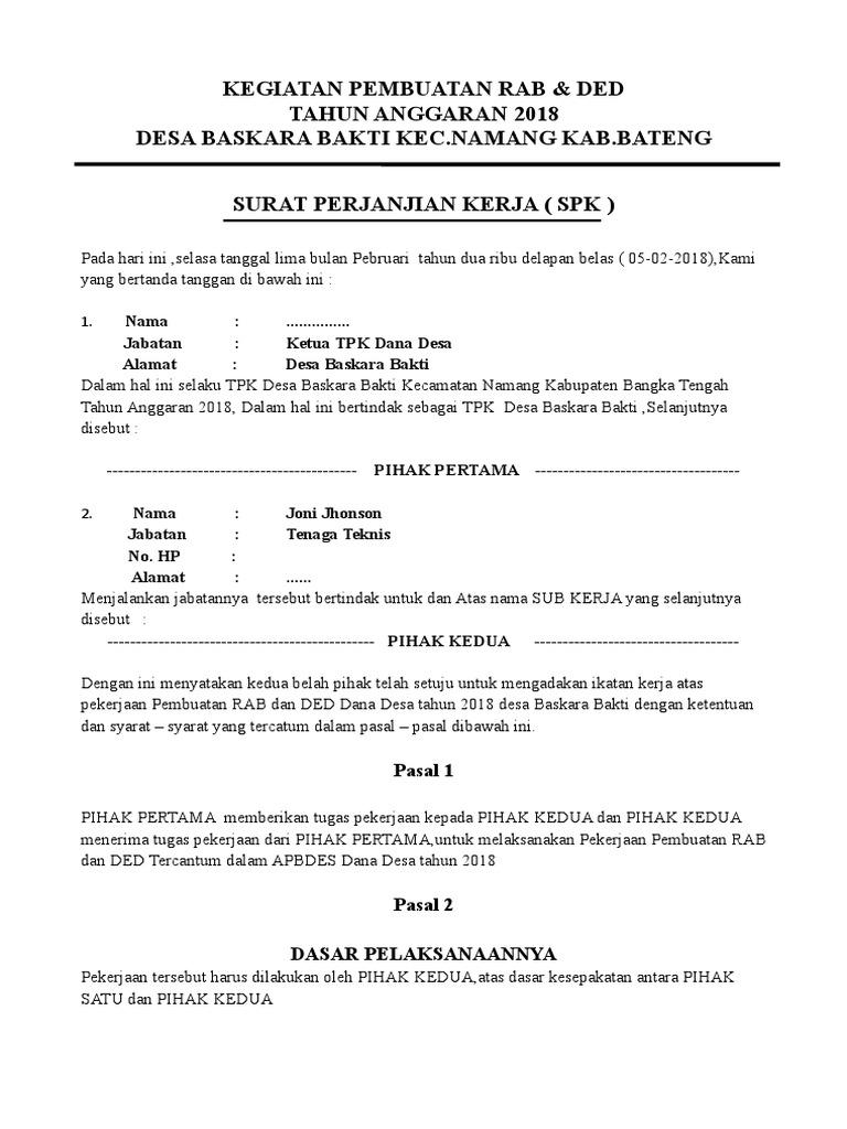 Sebenarnya siapa, tugas, dan contoh sk. Surat perjanjian ini memang wajib ada karena memiliki tujuan supaya dari. Pihak pertama dan pihak kedua dengan ini menerangkan kontrak kerjasama pembuatan video capturing inovasi desa dengan ketentuan sebagai berikut Yang bertanda tangan di bawah ini: