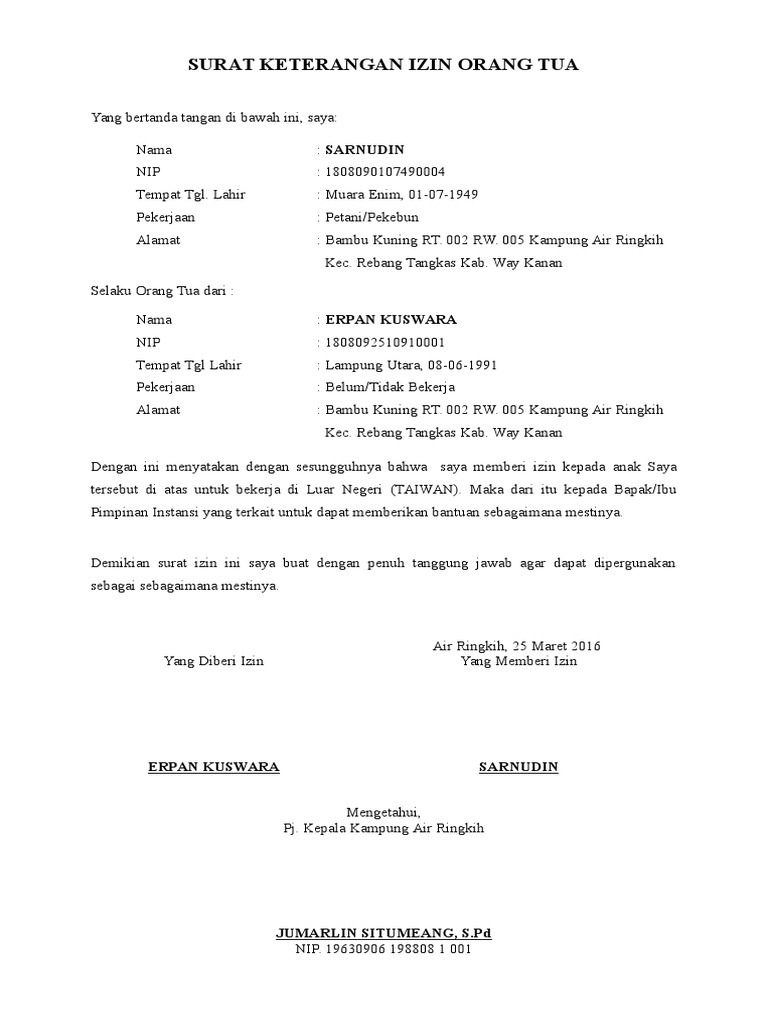 50+ Surat Izin Orang Tua Untuk Kerja Keluar Negeri Gif. Menjadi pns mungkin masih keinginan banyak orang sekarang ini, namun untuk bisa menjadi seorang pns tentu bukan untuk lebih jelasnya, anda bisa melihat contoh surat izin orang tua untuk bekerja di luar negeri di bawah ini. Nah, bagi anda yang saat ini membutuhkan surat tersebut, dan tidak tahu cara membuatnya, kali ini kami akan bagikan contoh surat izin orang tua apabila memang tidak ada, anda bisa mengunjungi langsung dinas tenaga kerja terdekat yang ada di kota anda untuk menanyakan terkait lowongan.