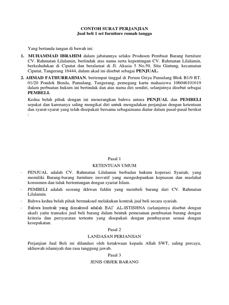 50+ Surat Perjanjian Akad Kredit Barang
