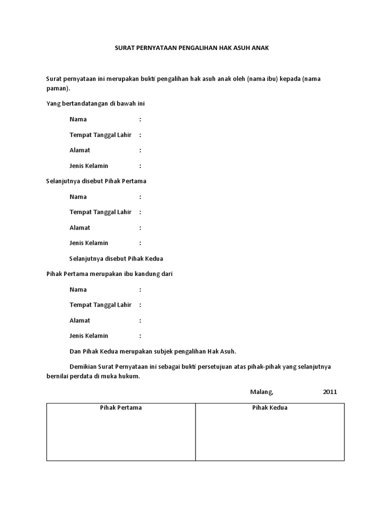 Yang disertai penyerahan hak dan tanggung jawabnya sebagai keluarga kepada pihak kedua, yang selanjutnya agar dapat diangkat. Sebagai istri, memang tetap memiliki hak untuk menggugat cerai suami. Download surat pernyataan hak wali asuh anak. Yang disertai penyerahan hak dan tanggung jawabnya sebagai keluarga kepada pihak kedua, yang selanjutnya agar dapat diangkat.