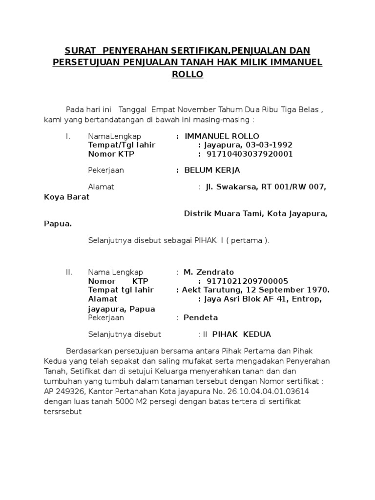 Pictures. Contoh surat pernyataan jual beli tanah dan bangunan. Beberapa hal penting yang tertera di surat perjanjian jual beli tanah mungkin akan terdengar awam dan sulit di mengerti.