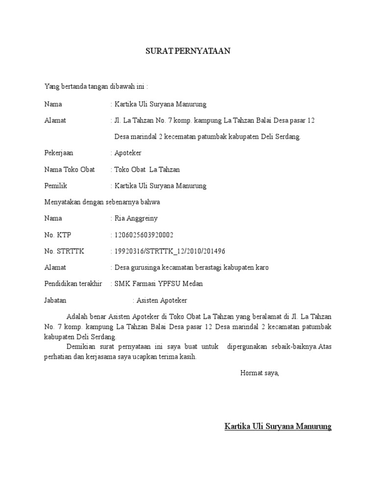 Copy surat izin kerja (sik) / copy ijazah asisten apoteker d. Contoh surat perjanjian kerjasama di berbagai bidang. Surat dengan ini menyatakan bersedia selaku penanggung jawab toko obat berizin sesuai dengan.