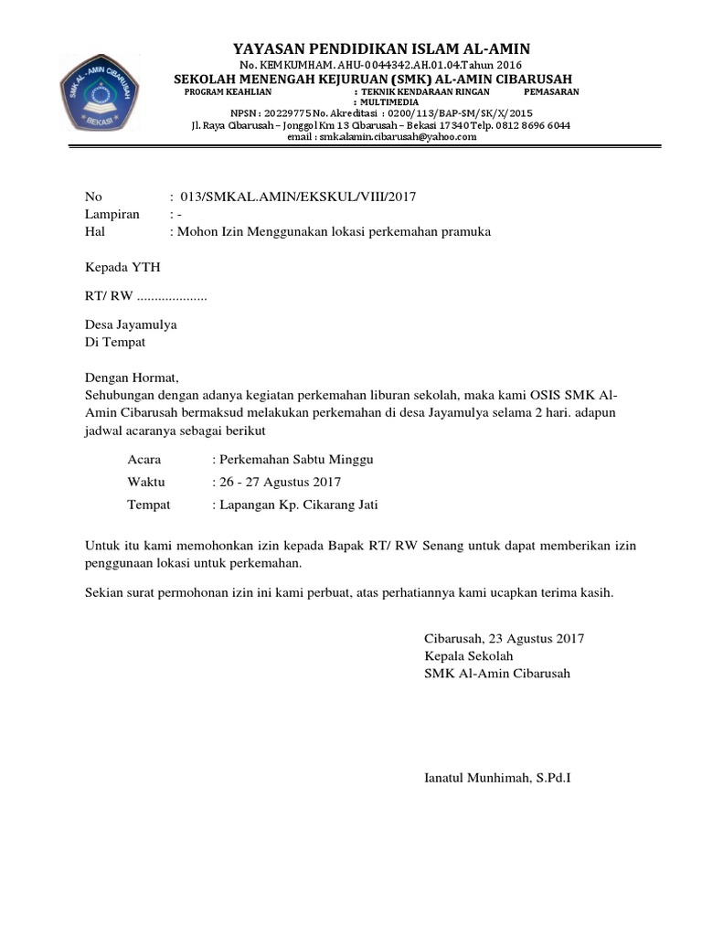 Download Surat Izin Kegiatan Di Sekolah Images. Contoh surat izin tidak masuk kerja pns. Adapun penggunaan surat izin ini biasanya ditulis oleh perseorangan dan ditujukan kepada pihak perusahaan, instansi pemerintahan.
