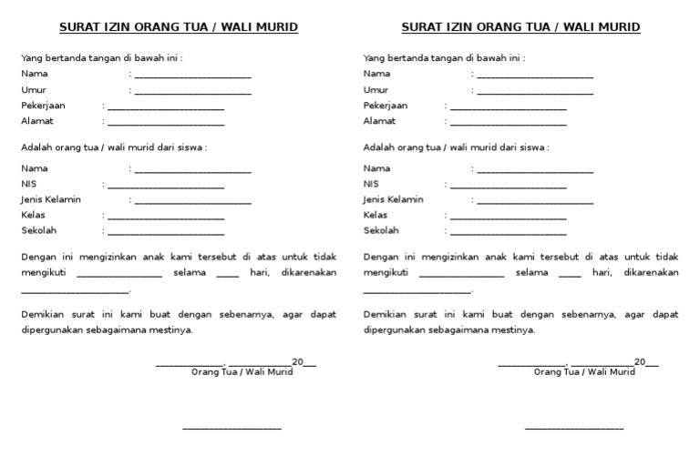 Farah jihan tempat, tanggal lahir : Terkadang ketika kita dalam kondisi tertentu, contohnya sakit, kita jika tempat kalian sekolah atau bekerja mewajibkan surat izin dengan persetujuan orang tua, tentu saja yang bertanda tangan dibawahnya harus orang. Demikian surat izin yang kami buat, atas pemberian izin dan kebijaksanaan bapak/ibu guru wali kelas saya ucapkan banyak terima kasih.memberitahukan baik dari sekolah ataupun dari orang tua atau wali murid serta guru yang mengampu pelajaran.