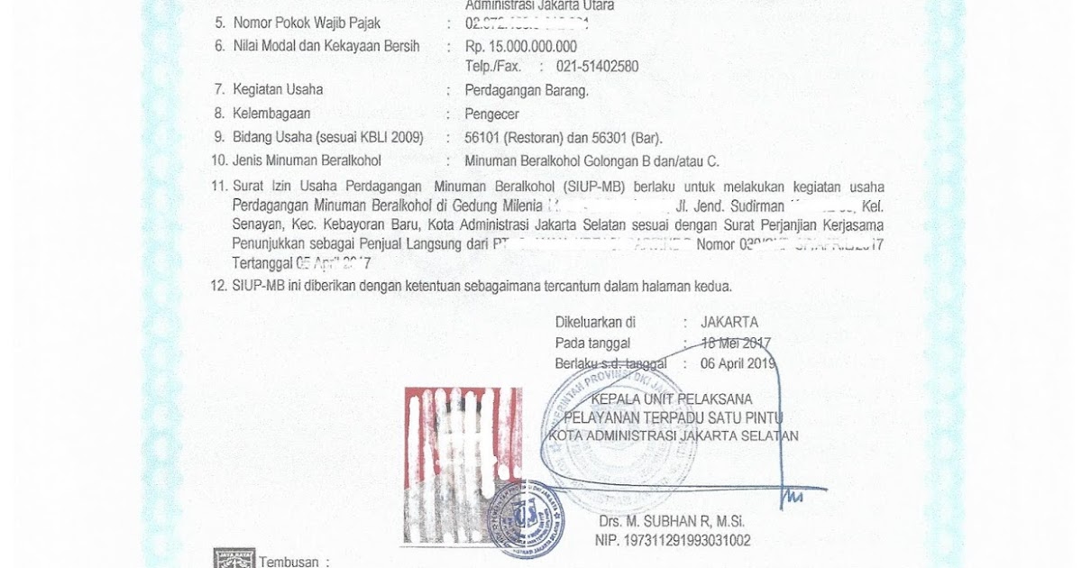 Rekomendasi persyaratan dasar penggolongan usaha restoran, hotel, atau bar dari provinsi jawa timur. Perusahaan minuman beralkohol wajib memperoleh izin usaha industri via oss. Membayar tarif pembuatan siup (surat izin usaha perdagangan). Dengan adanya surat izin usaha perdagangan (siup) artinya perusahaan anda sudah legal secara hukum dan aman dari penertiban perusahaan atau dari pihak lain yang mengganggu kegiatan perusahaan anda.