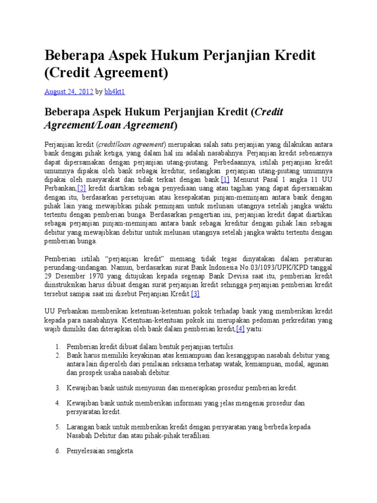 Download Surat Perjanjian Kredit Dibuat Pada Saat
