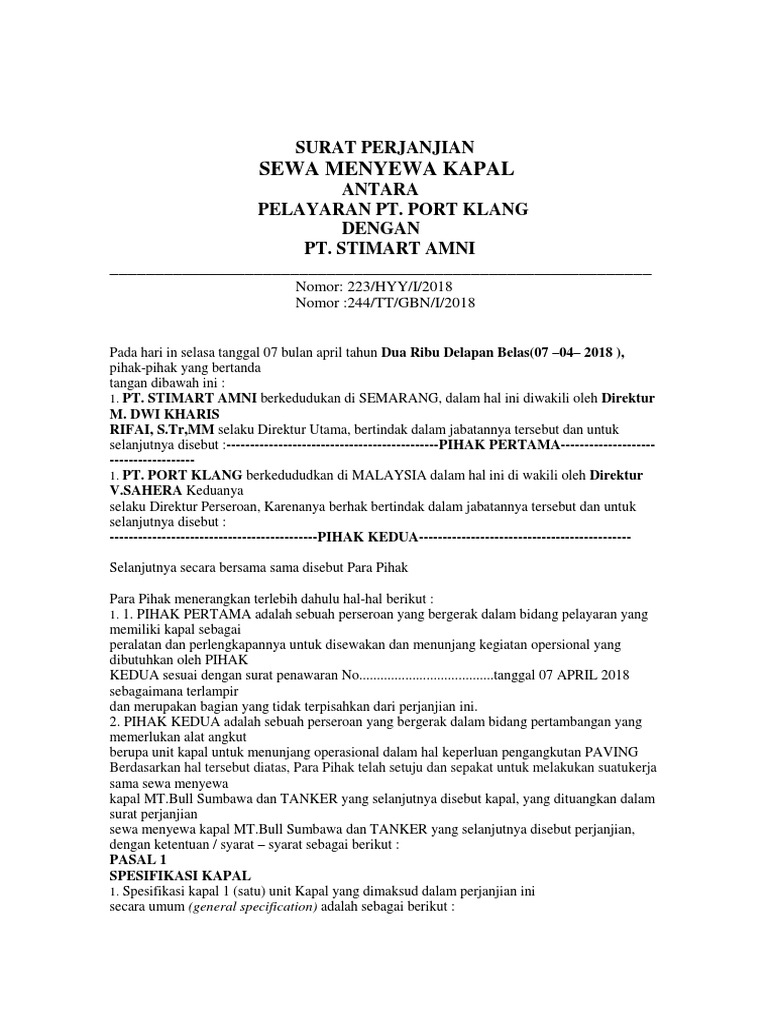 Download Surat Perjanjian Sewa Menyewa Kapal