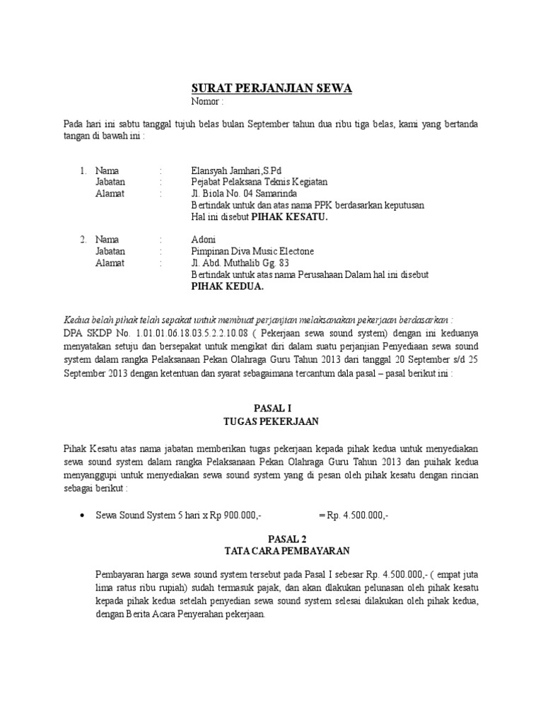 Download Surat Perjanjian Sewa Menyewa Sound System