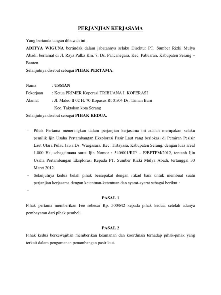 Get Contoh Surat Perjanjian Kerjasama Tambang Pasir Gif. Paijo tempat, tanggal lahir : Yang bertanda tangan di bawah ini :