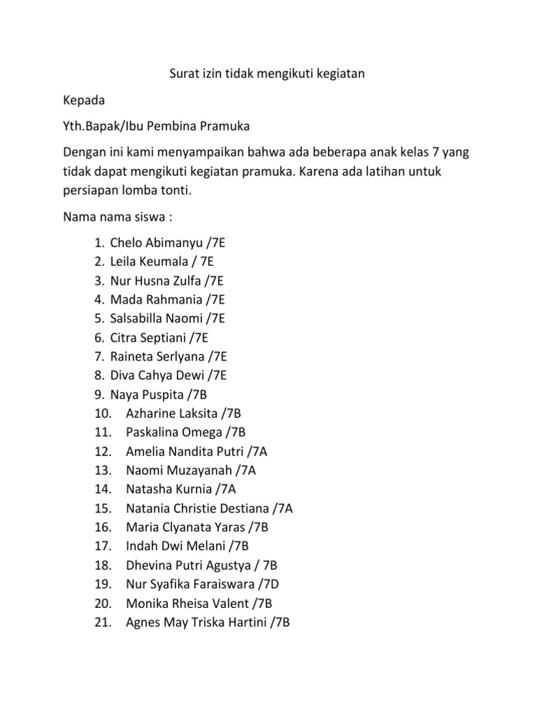 Get Surat Izin Tidak Mengikuti Latihan Pramuka