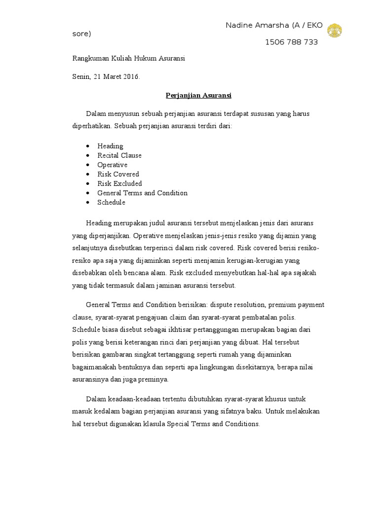 Contoh perjanjian asuransi surat perjanjian asuransi kepada yth.