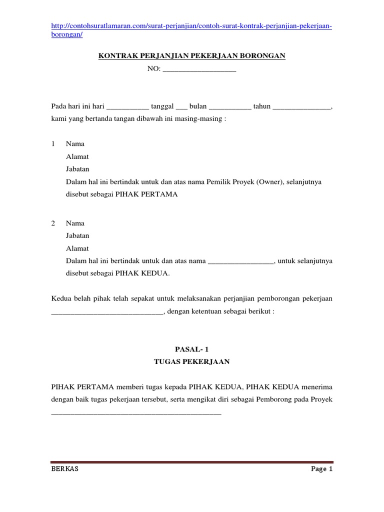 Gif. Pada hari ini, selasa, tanggal 5 bulan oktober tahun 2019 di purwokerto, yang bertanda tangan di bawah ini harga kontrak borongan pekerjaan pembangunan gudang yang telah disepakati kedua belah pihak ditetapkan sebesar rp 5.000.000.000 (lima milyar). Sesuai dengan namanya surat perjanjian merupakan surat yang digunakan untuk mengikat perjanjian atara kedua belah pihak.
