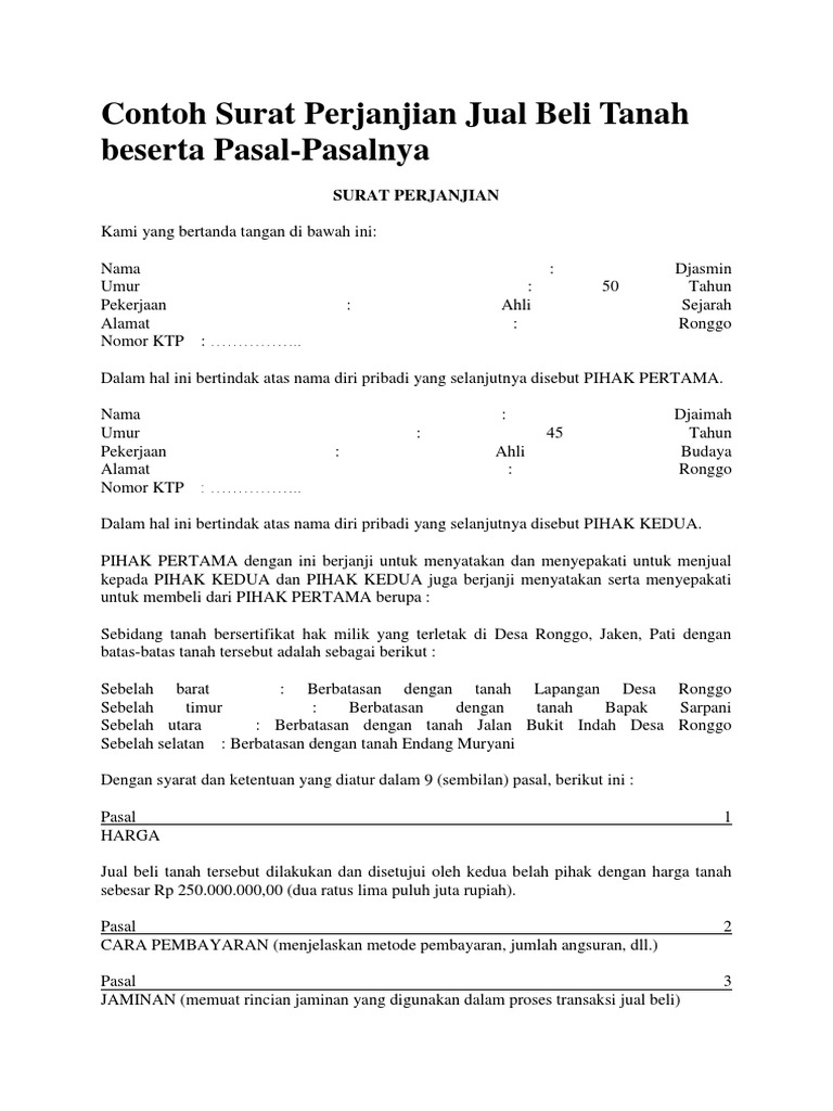 Get Surat Perjanjian Jual Beli Tanah Beserta Pasal-Pasalnya Images. Jl pondok jaya 13, cipinang, jakarta timur status perkawinan : Contoh surat jual beli tanah adalah surat yang dibuat pihak penjual dan pihak pembeli yang berisi kesepakatan mengenai jual beli.