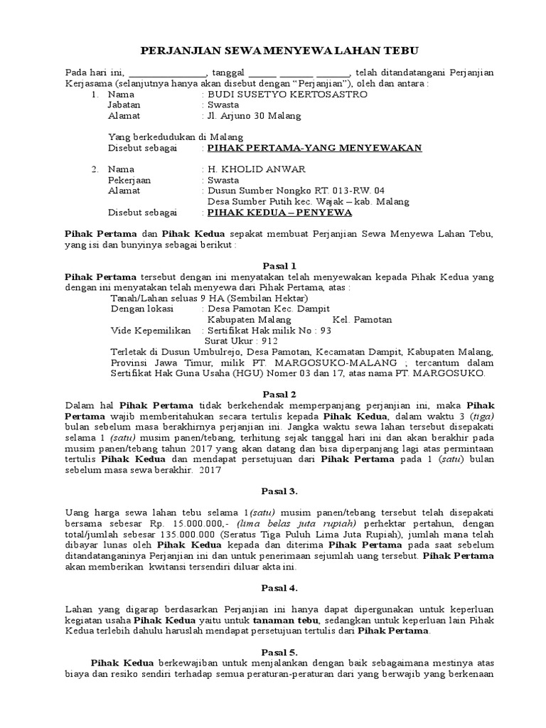 Get Surat Perjanjian Sewa Lahan Perkebunan
