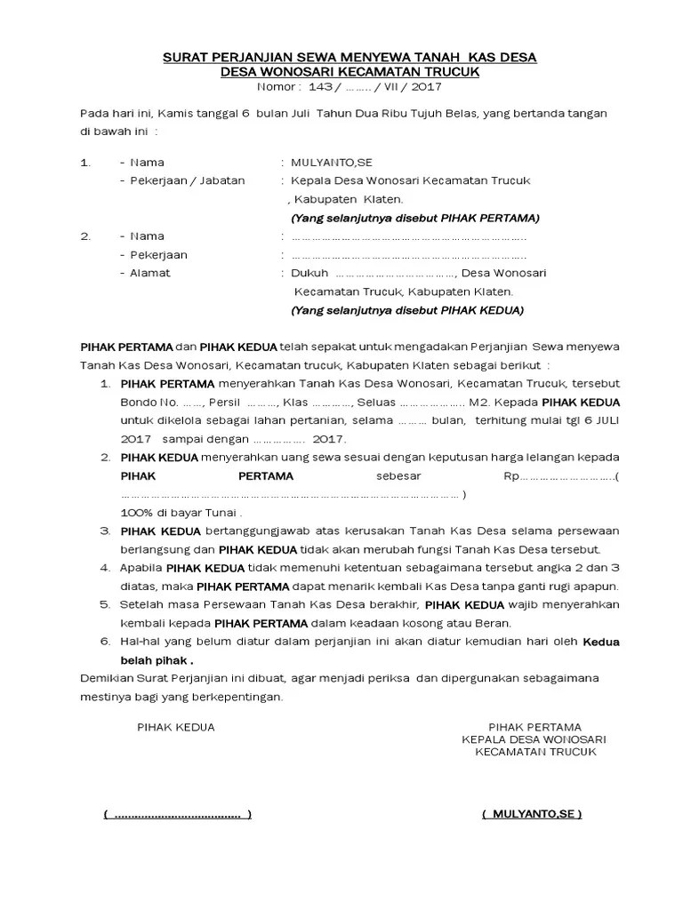 Images. Surat perjanjian sewa tanah yang bertanda tangan dibawah ini : Demikianlah perjanjian sewa / kontrak tanah ini kami buat dengan sebenarnya tanpa paksaan dari siapapun 2.