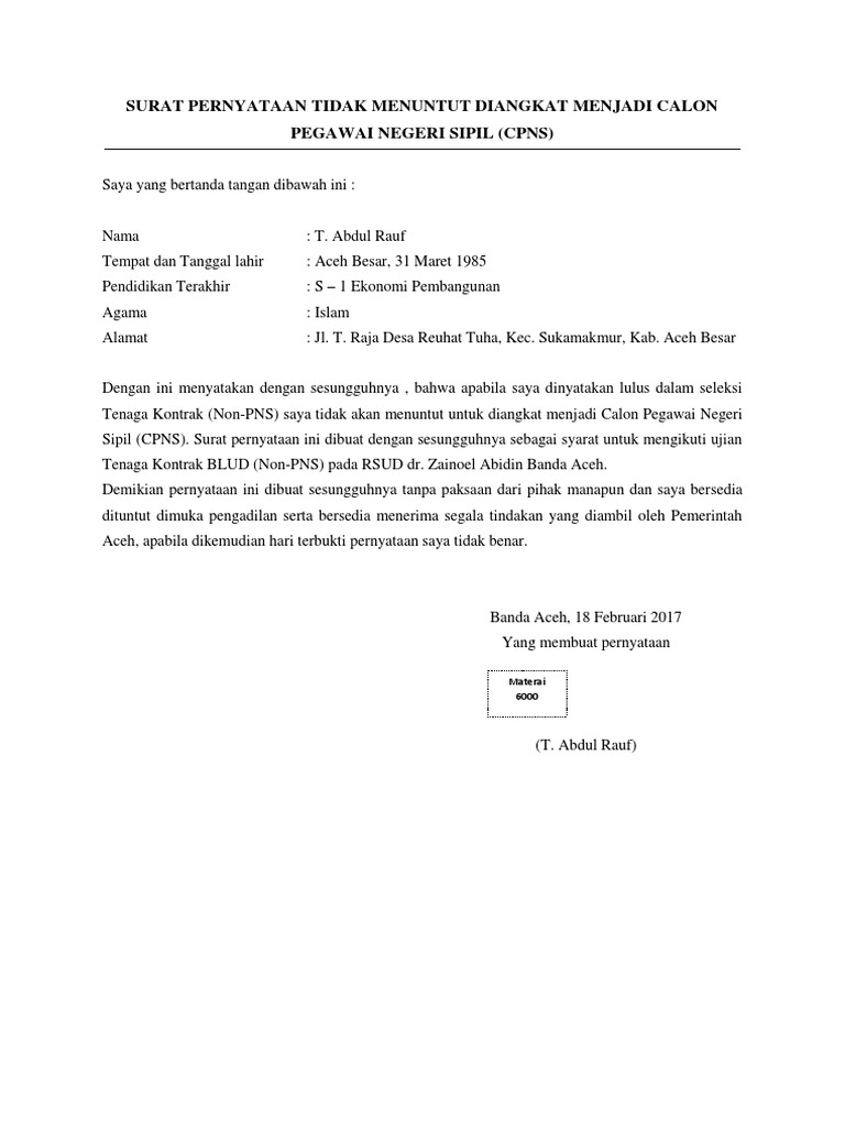 View Cara Membuat Surat Perjanjian Kontrak Kerja Cpns