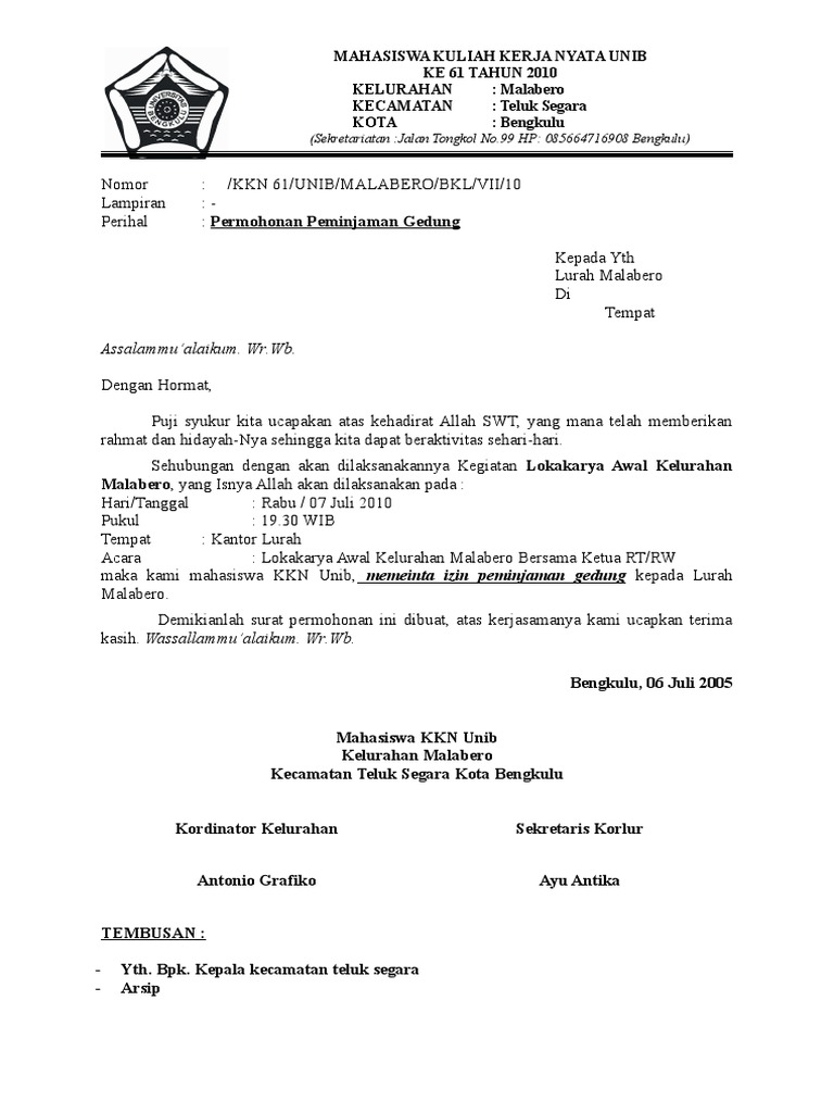 Ada surat untuk izin cantumkan juga keterangan seperti contoh surat izin untuk meminta izin menggunakan gedung.