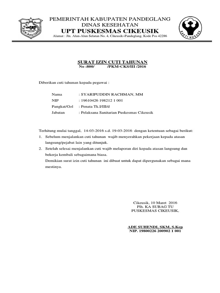 Dengan ini memberikan izin kepada anak saya untuk melanjutkan pendidikan sekolah menengah atas (sma) di sman 1 jember dan bersedia mengikuti ketentuan yang berlaku di sma tersebut. Surat ijin tidak masuk kerja di buat dengan tujuan agar atasan di kantor atau kepala sekolah tempat anda bekerja mengetahui alasan yang jelas kenapa anda tidak bisa masuk kerja agar nantinya. Contoh surat izin sakit tidak masuk sekolah.