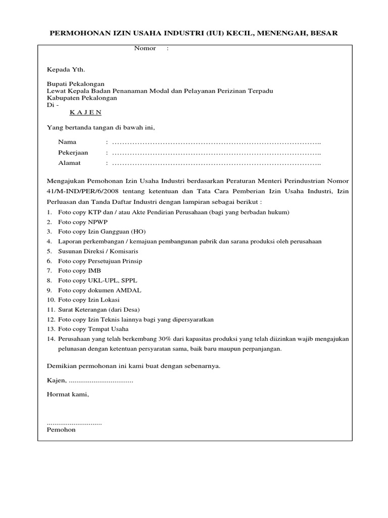 Sebagaimana disebutkan dalam perda no.1 tahun 2010 bab v pasal 46 ayat 1 bahwa setiap orang atau badan yan. Mengajukan izin karena tidak bisa mengikuti mata kuliah pada tanggal 21 januari 2019 karena urusan keluarga yaitu. Surat izin usaha perdagangan atau siup merupakan surat perizinan yang dikeluarkan oleh lembaga terkait kepada pemilik usaha dari berbagai bidang berikutnya, izin usaha industri atau iui sendiri merupakan perizinan yang ditujukan khusus untuk bidang usaha indutri dengan tugas utama yang.
