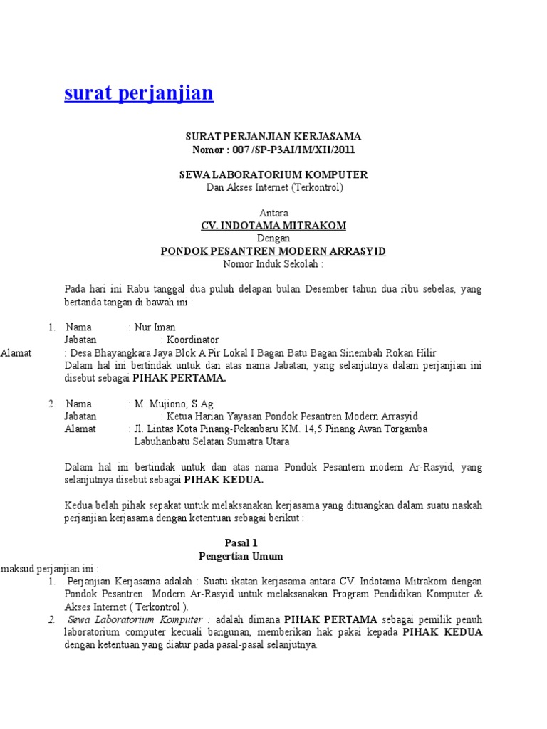 Surat perjanjian kerjasama sewa menyewa mobil. Contoh mou kerjasama perusahaan jasa. Namun untuk sesuatu yang bisa dibilang serius dan tidak ingin menimbulkan sengketa(masalah) dikemudian, baiknya surat perjanjian dibuat secara tulisan. Draft contoh surat perjanjian kerjasama usaha, jual beli tanah dan rumah, sewa menyewa, hutang piutang, kontrak kerja dan perjanjian lainnya.