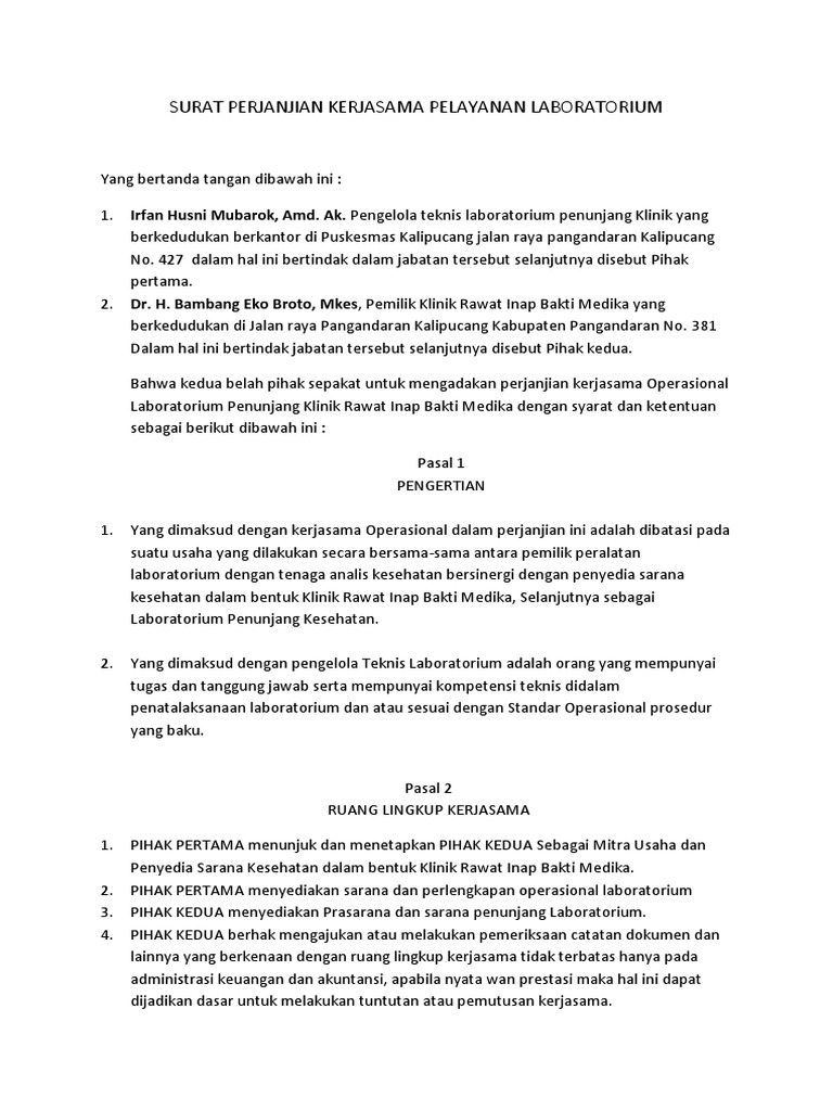 View Surat Perjanjian Kerjasama Laboratorium Images. Surat mou cuma untuk bukti dari satu perjanjian yang perlu diikuti dengan kesepakatan lain menurut kuh perdata kekuatannya cuma sebatas moral baiklah berikut ini yaitu contoh surat kesepakatan hubungan kerja atau mou antara klinik kesehatan serta perusahaan jasa laboratorium yang diambil. Suratresmi.id » surat perjanjian » 15 contoh surat perjanjian kerjasama berbagai bidang.