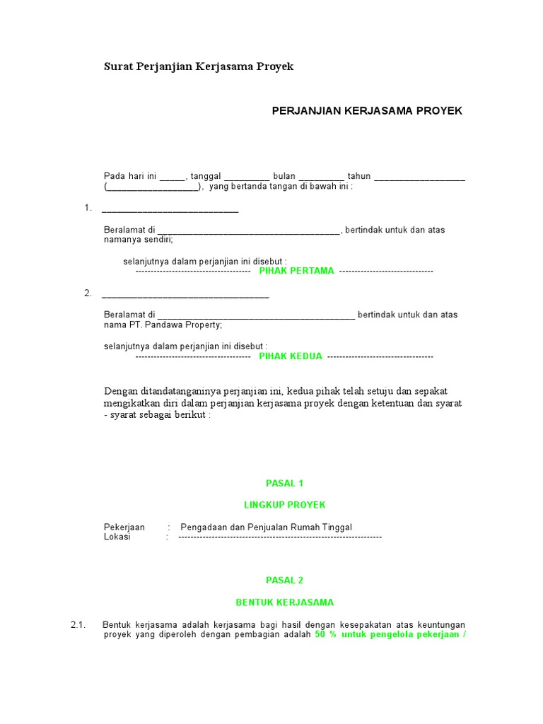 View Surat Perjanjian Kerjasama Proyek Konstruksi Pics. Pada artikel kali ini masih ada satu lagi surat perjanjian yang akan kita bahas. Dengan adanya contoh, maka anda bisa membuatnya dengan lebih mudah karena hanya tinggal meniru dan mengubah sesuai kebutuhan anda.