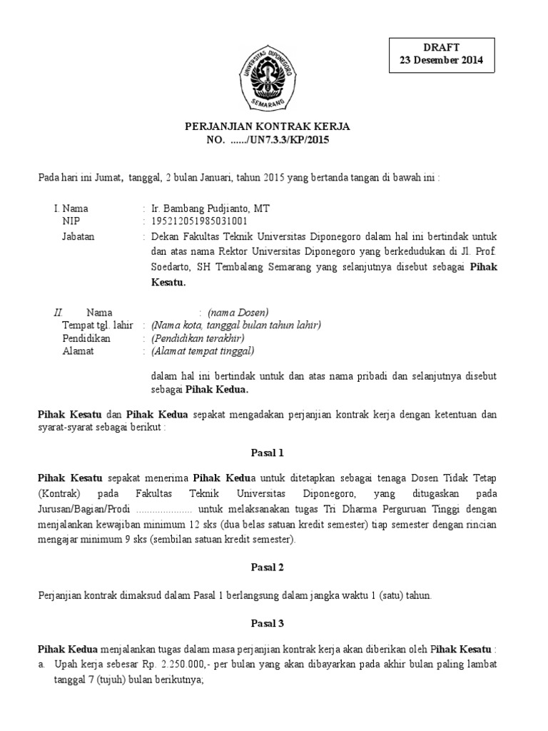 View Surat Perjanjian Kontrak Mengajar Dosen
